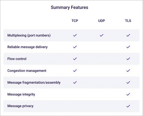 Multiplexing Assign port numbers to each application, which enables the IP network to carry thousands of application messages between hosts simultaneously.